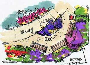 Theapeutic garden designs are intended to be a collaborative effort by all concerned; the designer, institutional/facility staff, and patients. The garden is seen as “medicine” from a holistic nurse’s perspective. A garden is built selectively according to what a particular institution’s needs are. It’s a whole process whereby the staff is drawn into the understanding of the garden’s healing qualities, the medicine of the plants, including flower essences, which can actually be made from it. This concept is modeled after Anthroposophical clinics in Europe.