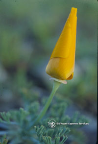 This deeper insight into the soul gesture of the California Poppy helps us to understand why it has traditionally been used as a herbal nervine to calm states of pain, restless anxiety, nervous movement and insomnia. These calming qualities help one to come to a place of rest, receptivity and inner containment. As a flower essence, these same properties of the California Poppy work not only in the body but also the soul consciousness. The California Poppy is one of the key remedies to deal with patterns of addiction, restless seeking and experimentation, along with ever-fluctuating desires. One who needs this flower essence is challenged to learn how to hold life experiences even when unpleasant: pain, anxiety or uncertainty. Gradually the soul learns ever greater inner responsibility, calm containment and self mastery. It is this chalice of gold within the heart that learns to receive and embrace all of life, so that the very light that we seek becomes that light that we radiate as a blessing to others.