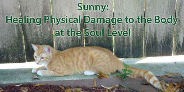 Further integration with body, balance issues This began as an animal communication consultation. There were numerous telepathic communications with Sunny before a decision was made to include flower essence therapy. Sunny, a medium-sized (10-12 lbs.) neutered male orange tabby cat, was found lifeless under the couch one day, with no indication as to the cause. It has since been ascertained that he may have sustained an injury to his head and/or right ear - and/or contracted an infection – when he escaped from the back yard enclosure. He remained in a coma-like condition for several weeks. His human caretaker, TL, took him to various animal and human medical/veterinary specialists and alternative healers who were unable to diagnose or improve his condition. Telepathic communication indicated that he was struggling with making a decision to transition. He was then taken to the LSU School of Veterinary Medicine Clinic in Baton Rouge, Louisiana, where extensive neurologic examinations were performed. From these tests, it was determined that he had middle ear disease and rupture of the tympanic membrane of his right ear. There was no indication of the cause, though several possibilities were mentioned in the Discharge Notes, none of which offered any "curative treatment." He was given antibiotics on discharge and was later given Antivert for dizziness. Sunny spent 3-4 weeks recuperating in a baby bed, wearing diapers. Gradually as he gained strength, he had supervised time on a blanket or cat bed on the floor. He is now re-integrated with his (large) cat family, though often chooses to remain independent. The scope of the flower essence therapy had been to first, assist Sunny in making a decision whether or not to leave the physical plane, and thereafter to aid him in healing the infection and injury and to assist him in more fully integrating into his physical body. Over the course of the flower essence therapy, Sunny has become more confident and more physically "present." He has nearly regained all of his former abilities though still is a bit awkward and unable to perform some tasks (e.g., descend a staircase).
