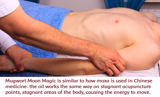 Dr. Greg thinks that the Yarrow Environmental Solution in his misting formula freshens and clears the room in a profound manner. “I think there's something in regard to the Yarrow and the salt water. Some of the training I've done with energy work recommends that you have a bowl of salt water in which you put your hands after you do the work, just to clear energy from your hands. Sometimes I'll take the YES, put some into my palm, and rub it into my hands to clear them, because they can get super ‘hot’ clearing away energy.” At times, Dr. Greg will also use the Fear-Less formula for people who are experiencing anxiety or are feeling extreme fear. He asks them to breathe, close their eyes while lying there, and he sprays directly over them in their energetic field. Mugwort Moon Magic & Dandelion Dynamo: used extensively to help clients loosen and release tension in muscles Dr. Greg does body work, but typically doesn’t use much oil on his patients. However, he uses Mugwort Moon Magic and Dandelion Dynamo specifically for their effective results. Mugwort Moon Magic is helpful for people who have stagnant emotional holding patterns, such as people who are depressed; typically they have been chronically “slouching,” from the feeling of great sadness. All of the stagnant energy builds up in an area, which then needs to be opened up. All of the "diaphram" areas of the body are places where people tend to block off the flow of energy, blood flow, etc., between one part of the body and another. Those are areas where people hold on to emotional states. “ Mugwort Moon Magic , what I consider to be the more yin of the two oils, is very good for getting the stagnant energy moving. If someone's neck is tight, they're ‘stuck.’ Even if I just apply some of the oil, and slowly move the tissue around, I'll find that the heat will dissipate, damp heat will begin to move. I actually feel the hot steam, moisture, and heat coming off, and then everything will loosen up; I can feel the pattern break up. It's almost as though the energy is so thick, it's like the consistency of jelly. After I apply the oil, I feel it melt into a liquid, then a gas, and ‘poof,’ it’s gone. I've used it on many, many people with very good success, targeting those types of situations.” Dandelion Dynamo , a more yang oil, works differently, according to Dr. Greg. It is better for more physical issues (but not just physical, as they most likely start in the emotional body). It helps with the type of stiffness in the body associated with pushing beyond where the body wants to go, resulting in hardening. Different emotions can lead one to that kind of “pushing” behavior. Dandelion softens hard muscles, but unlike the Mugwort Moon Magic, it “tonifies” them at the same time. While the muscle will have strength and is holding itself, it loses the hard, rigid, rock-like aspect that comes more from a mental perspective and pushing beyond limits. Dr. Greg has found Dandelion Dynamo to be very effective in the neck, shoulder, and head areas, where many people carry their tension. (It works for other areas as well, the pelvic diaphragm, low back, or hips, depending on the person’s pattern of holding tension.) “You can't go wrong with this oil for neck-shoulder restriction. Many people have that condition from working at computers: there's a tendency to put the chin forward, and then the whole back of the neck tightens trying to lift the head up. Also, it's the same position for many people driving or sitting in their ‘Lazyboy’ watching television for hours every night; they’re leaning back, the low back is collapsing, the chin comes forward; again, the ‘head forward’ position. Some people are in that position for 10 hours a day; it's chronic for Americans. I spend day after day working on physical conditions caused by these types of situations. Both Dandelion Dynamo and Mugwort Moon Magic are very useful tools, and I think that they could help people at home as well.”