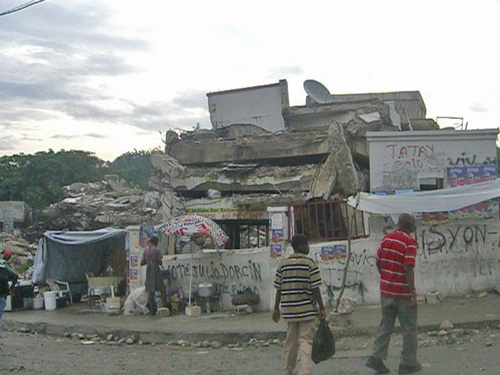 Another side effect of the tent city ghettos, is that no one is working, and everyone is just hanging around apathetically waiting for the water truck, or rice and bean allotments to come: this is the kind of “no future” attitude of ghetto dwellers. While this is not true of the older people, the younger generation, especially the teenage mothers, seem to have lost any kind of incentive to change anything for the better in their lives. For instance, one of them sent her one month old baby who seemed to be on the verge of dying with yellow fever, over with another teenage friend. I asked for them to bring the baby back to check that the fever was down later in the afternoon, but she still was not the person to bring the baby. When I finally summoned her, she seemed indifferent to the fate of her child and unwilling to do anything herself for his well being, such as a sponge bath – too much trouble. Other young mothers with means to buy food would ask us for vitamins for their children, and when we explained that fruits and vegetables were the best source of vitamins, they would say, “But I don't have time to cook them.” Asked, “What do you do for work?” “Nothing, I'm jobless, it just takes so much time to chop them." So with the earthquake, not just buildings caved in, but it undermined an active, resourceful society.
