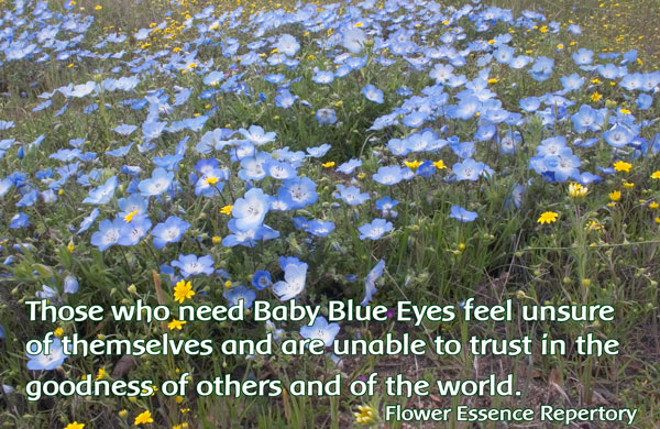 – for her self-centeredness and egocentrism, by providing empathy and a compassionate look at others, especially her father. This flower essence remedy, for me, has the obsessiveness and character of someone who remains for a long time in negative patterns and feels persecuted by everyone. It’s going to help Heather, Baby Blue Eyes and Scarlet Pimpernel’s work