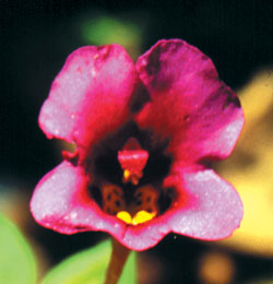 La famiglia botanica delle Scrofulariacee Il genere Mimulus fa parte della famiglia delle Scrofulariacee che comprende inoltre i Penstemon, Indian Paintbrush, Snapdragon e Mullein. In questi fiori non ritroviamo la forma cosmica a stella delle margherite e delle rose, anzi i fiori sono orizzontali, a forma di bocca con una simmetria bilaterale, simile a quella umana o animale, dai colori vibranti. Questi fiori creano uno spazio intimo dove, come negli organi umani o animali, e' possibile contenere e sperimentare le forze dell'anima. Le essenze floreali della famiglia delle Scrofulariacee si rivolgono a quelle emozioni intense, come la paura o la collera, archiviate nei recessi piu' profondi della psiche, e nei corrispondenti organi fisici. Queste emozioni sono descritte come "sentimenti a livello istintivo, viscerale, che vengono dal di dentro" e che sono spesso correlate a disturbi nella regione metabolica del corpo. All'interno della famiglia delle Scrofulariacee, il genere Mimulus - detto anche Monkeyflower (il fiore delle scimmie n.d.t.) - ha un'infinita' di specie diverse (approssimativamente 150 in tutto il mondo, di cui almeno 40 native della California). La caratteristica di questi fiori e' la loro forma a bocca, una "gola" che si allarga in due petali superiori e tre inferiori. Da quattro di questi Monkeyflower provengono le essenze floreali FES, che vengono cosi' ad espandere il tema Mimulus: il muovere attraverso la paura. Proprio come le diverse specie all'interno dello stesso genere sono variazioni di un tema botanico, cosi' le varie essenze dei Monkeyflower esplorano quelle tematiche di paura che si impadroniscono della vita. Questo genere di fiori forma uno spettro di colori: dal rosa, al rosso, all'arancio, al giallo, al porpora che puo' essere chiaramente collegato a specifici centri emozionali nel complesso mente-corpo: