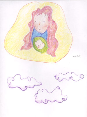 Comments on the case by Patricia Kaminski: I was impressed to see how the artwork presages the event of her becoming pregnant...a number of pieces show various aspects of “womb enclosure” or “spirit making contact” – these were drawn before Keiko got pregnant but when she was taking flower essences to work with the various soul issues. I think Angelica and Indian Paintbrush [were] very pivotal in her case – helping her to align creative forces – which for her particular creative destiny brought her to bringing a child into the world.